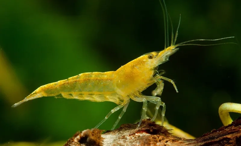 Tép Vàng là loài tép cảnh mini nổi bật với màu vàng rực rỡ, cơ thể nhỏ gọn và hoạt động linh hoạt.